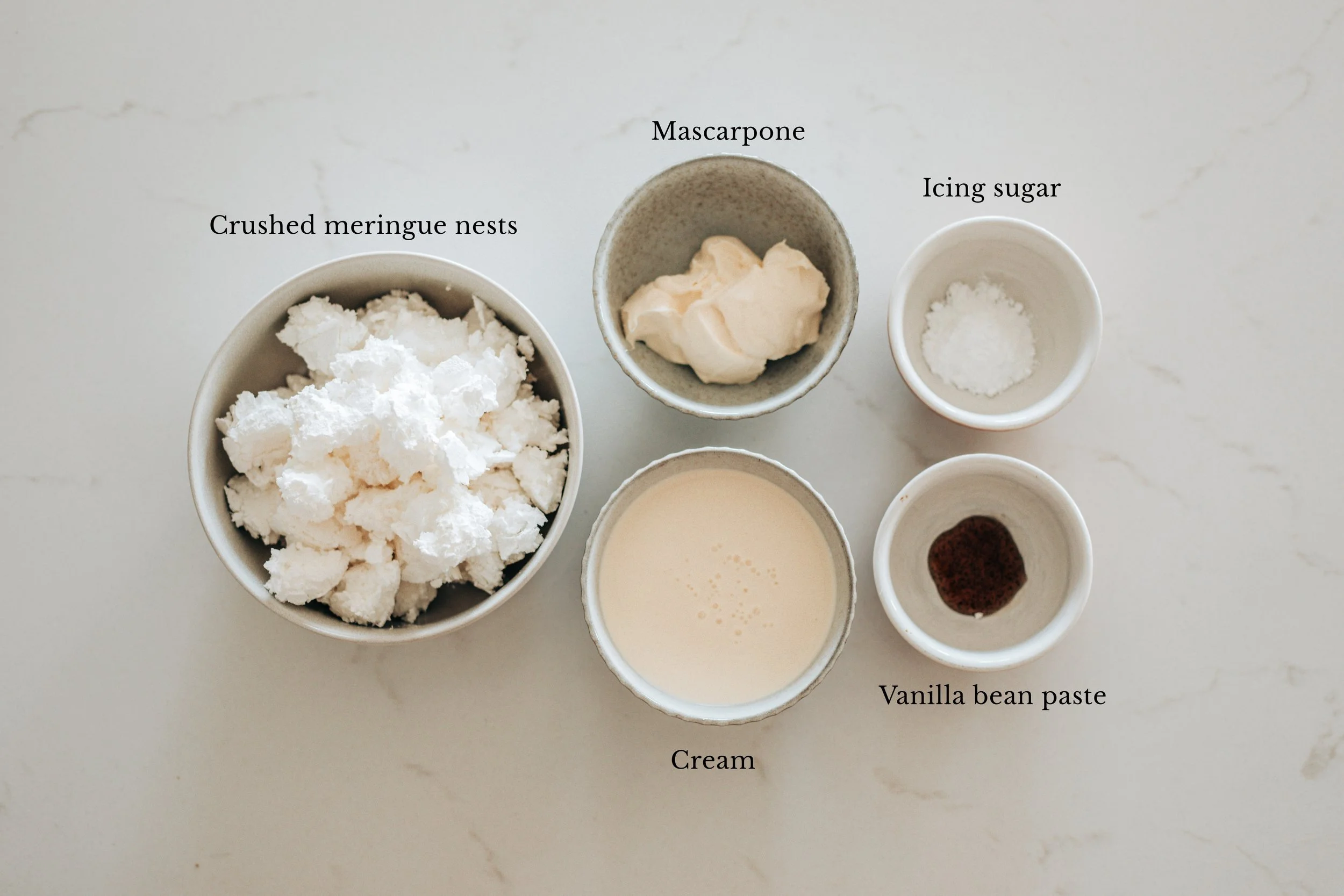 Store-bought meringue nests are perfect here and save so much time. They’re going to be crushed anyway, and the convenience is unbeatable. If you love making your own, feel free — but the pre-made ones work beautifully and no one will know!
