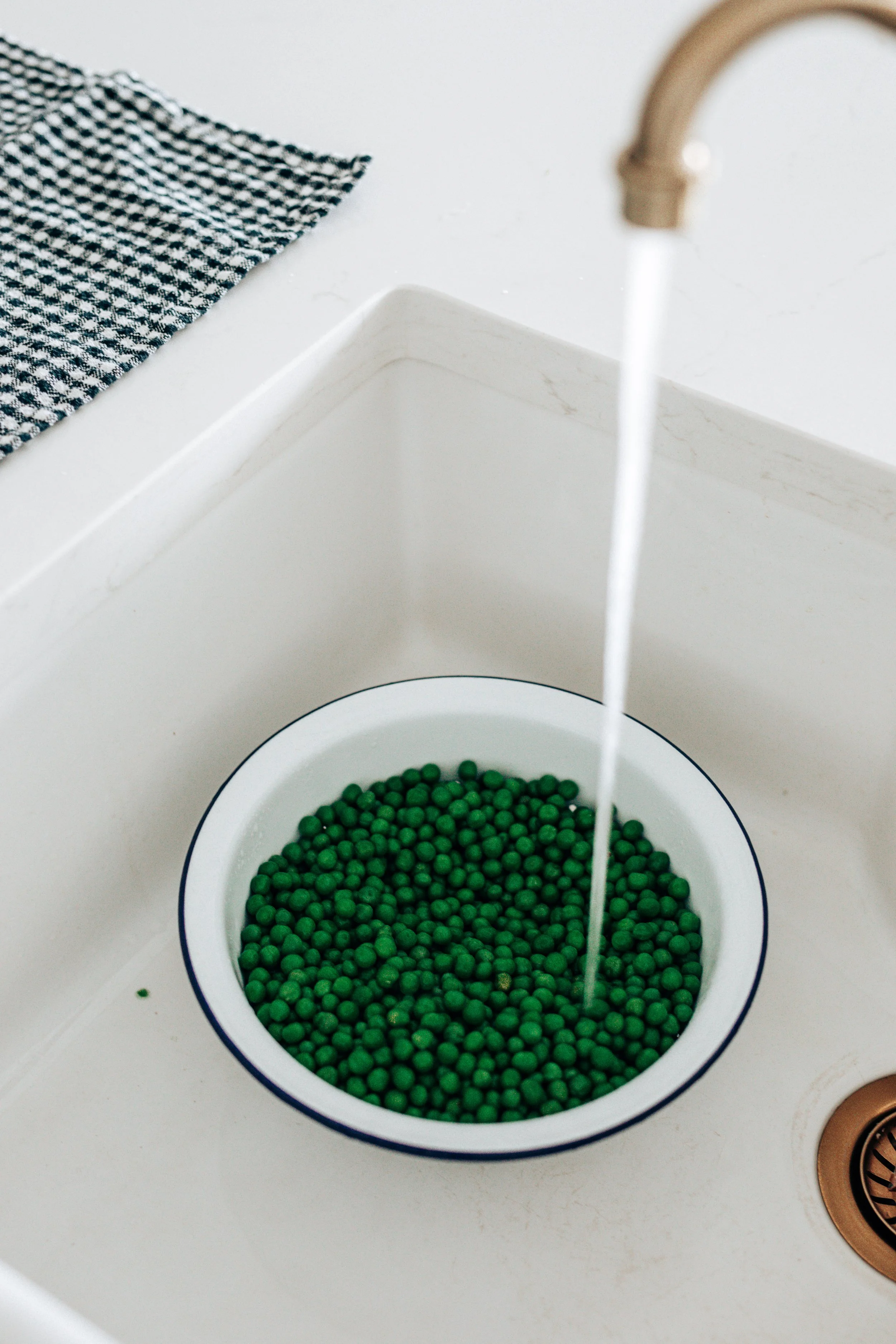 Salt is what makes the peas taste sweeter and more defined. A small amount sharpens every flavour and brings balance.