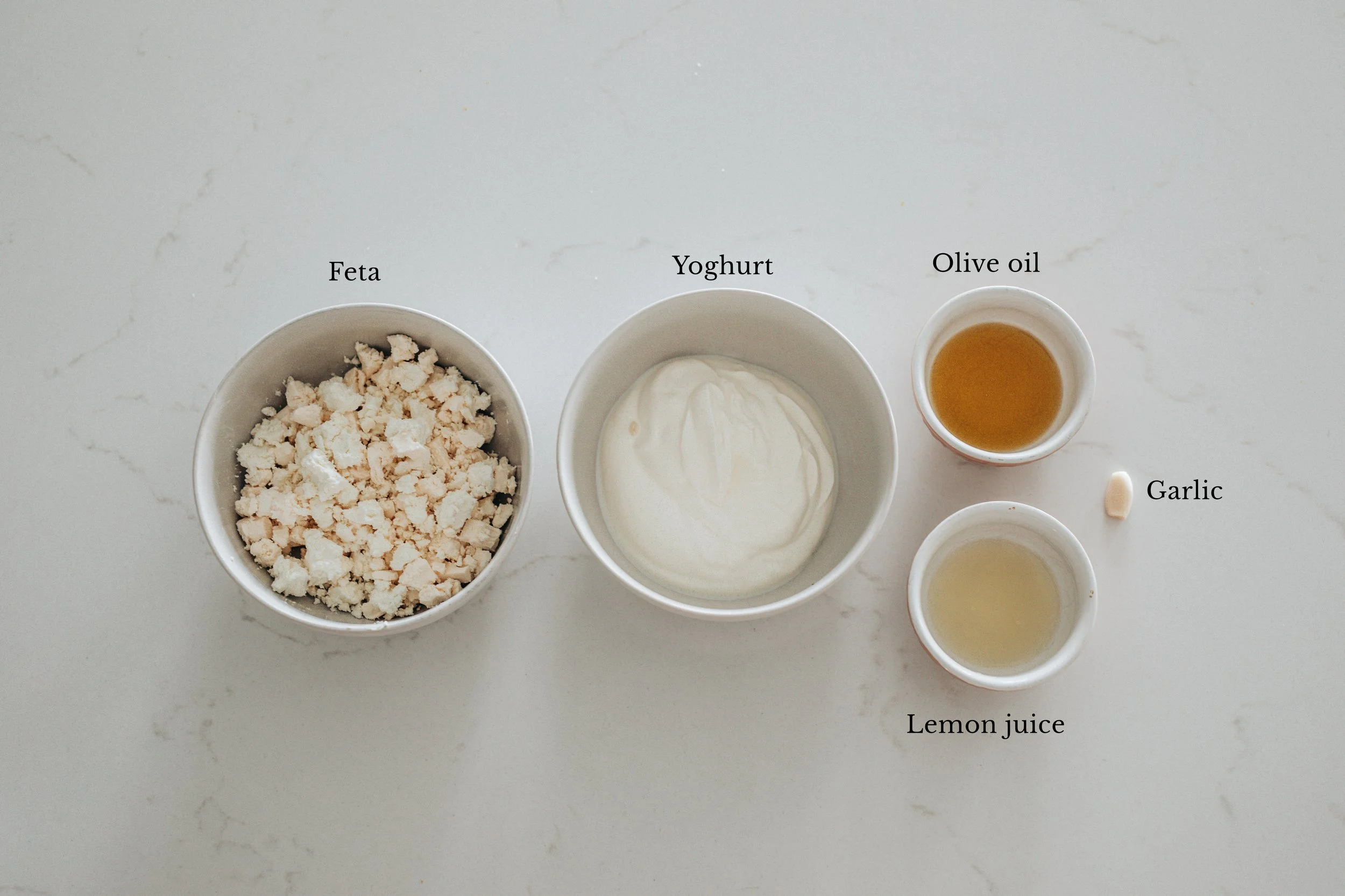 Acidity is essential here. Fresh lemon juice balances the saltiness of the feta and lifts the entire base so it tastes bright rather than rich. It keeps the flavour clean and fresh.Garlic